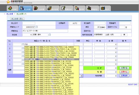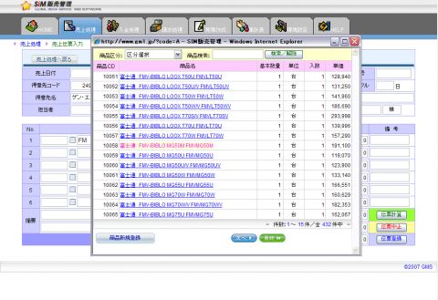 左側の図の様に例えばFMと入力すればFMの文字を含んだ商品一覧を表示します。