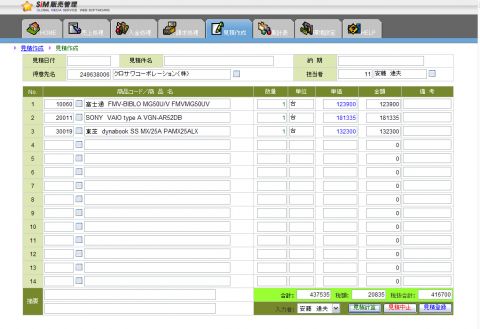 見積もりを一元化する事により同様な見積もり書を参照して少し項目を増やすなど、見積もり作成時間の短縮にも繋がります。