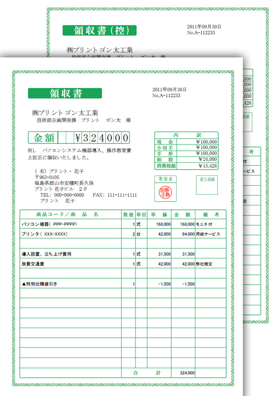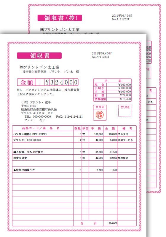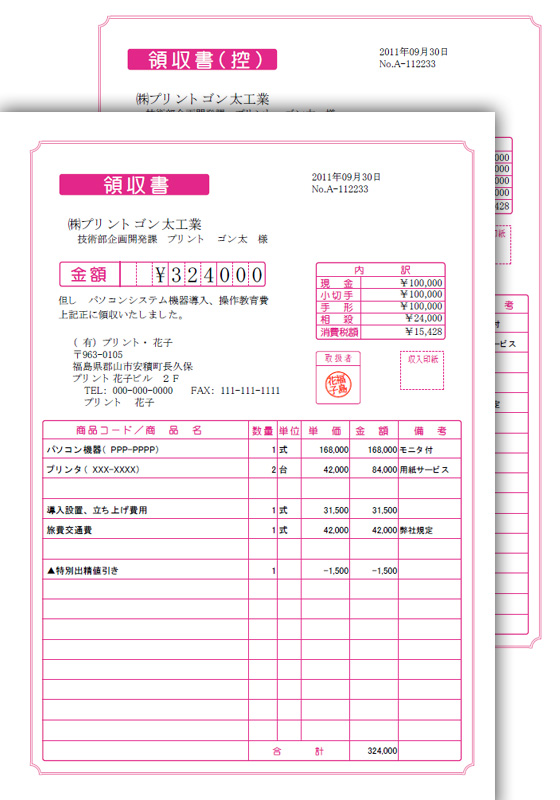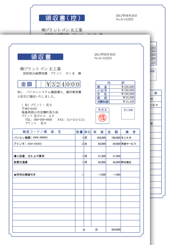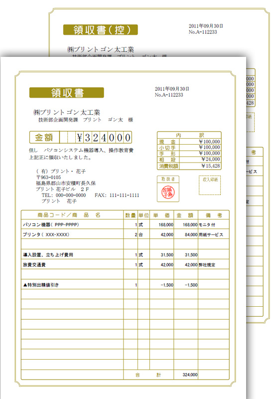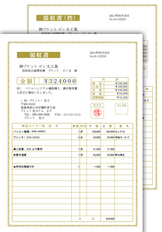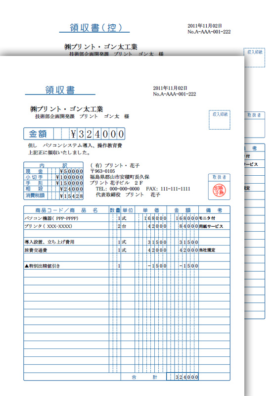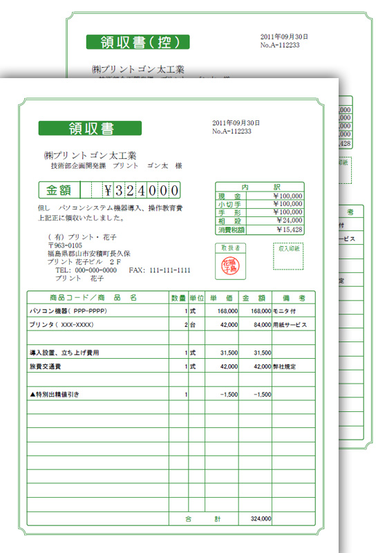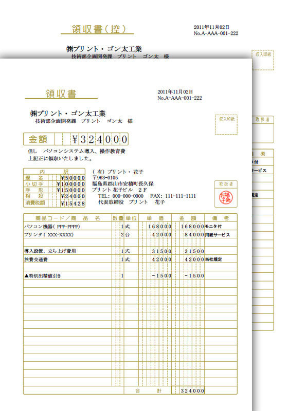 領収金額だけではなく、商品明細を記載する場合には便利かと思います。