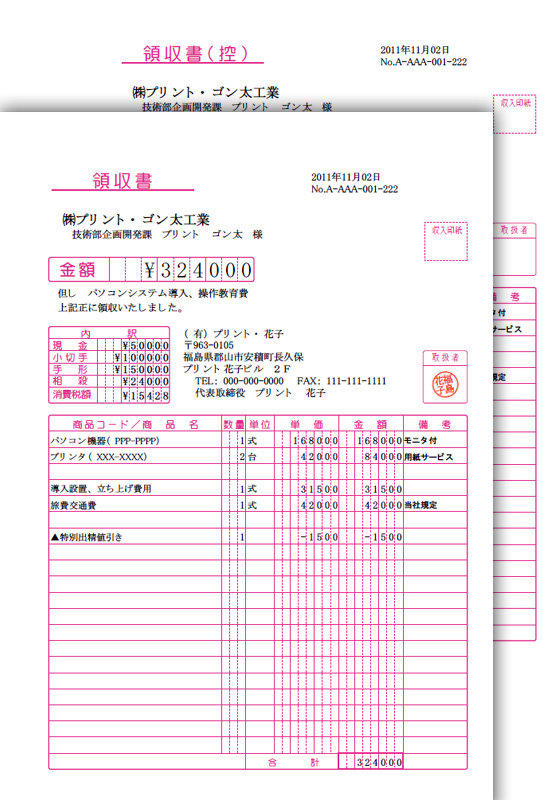 金額の印字をマス目にキッチリ入れ込んだオーソドックスながら少し変わった フォーマットです。