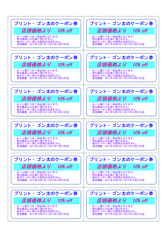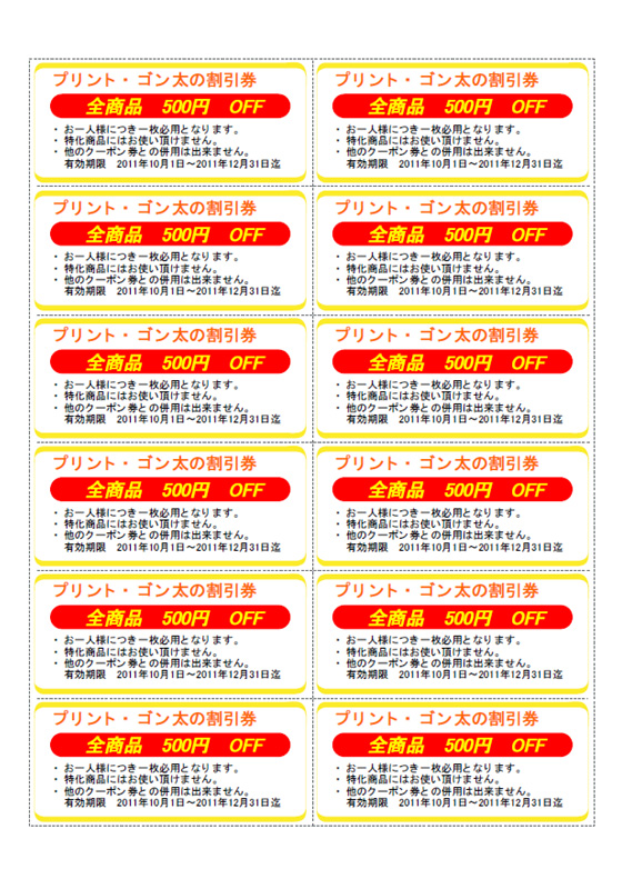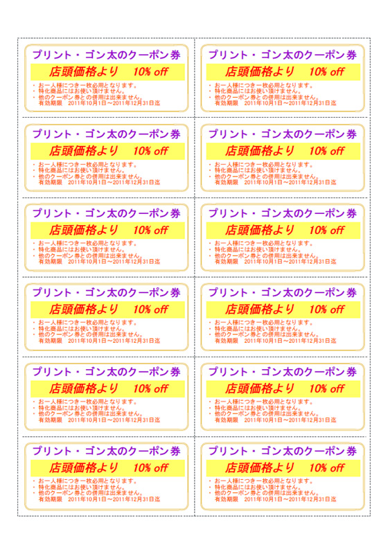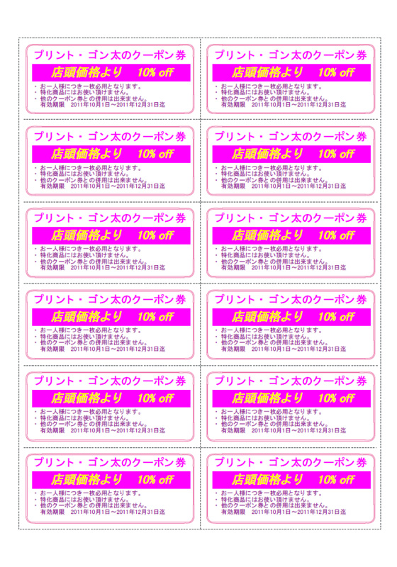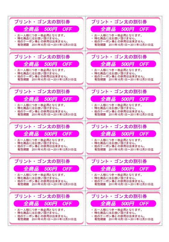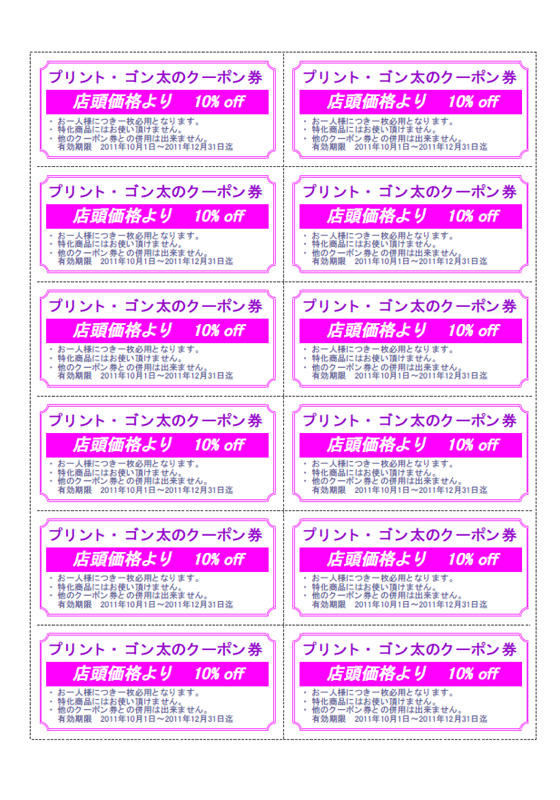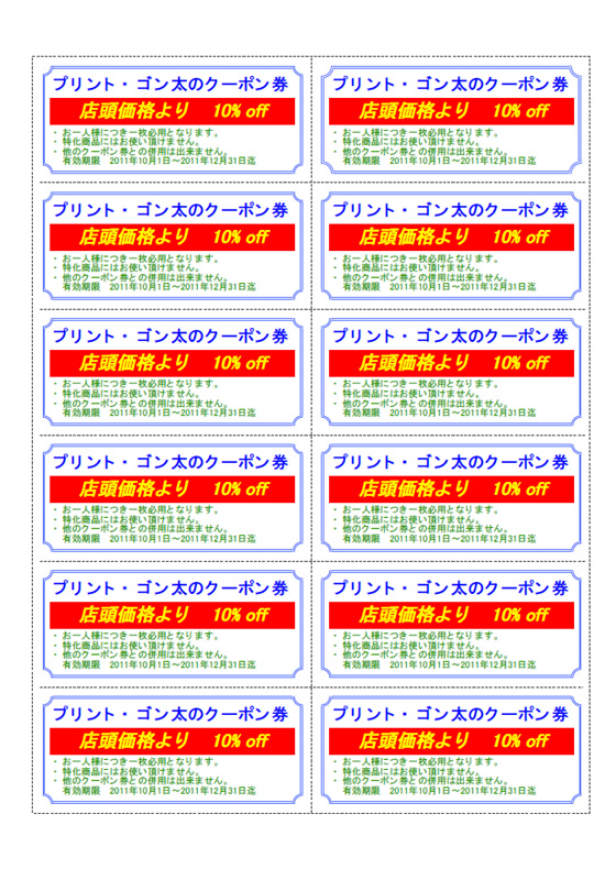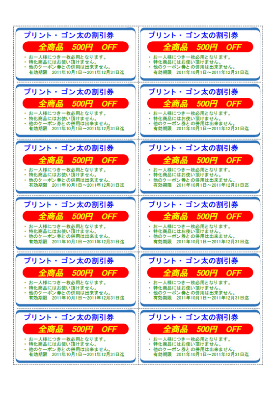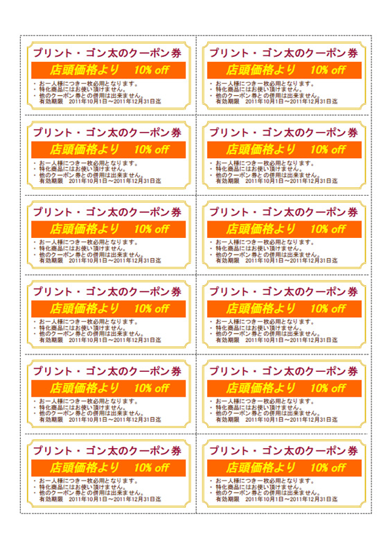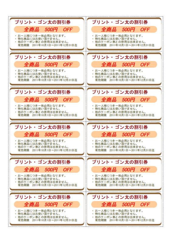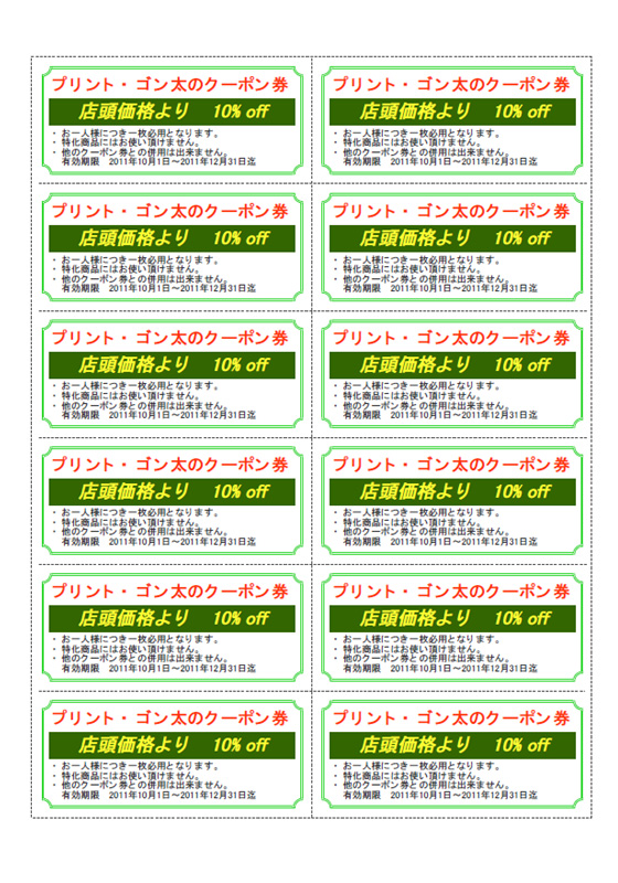12枚取りのクーポン券を作成します。