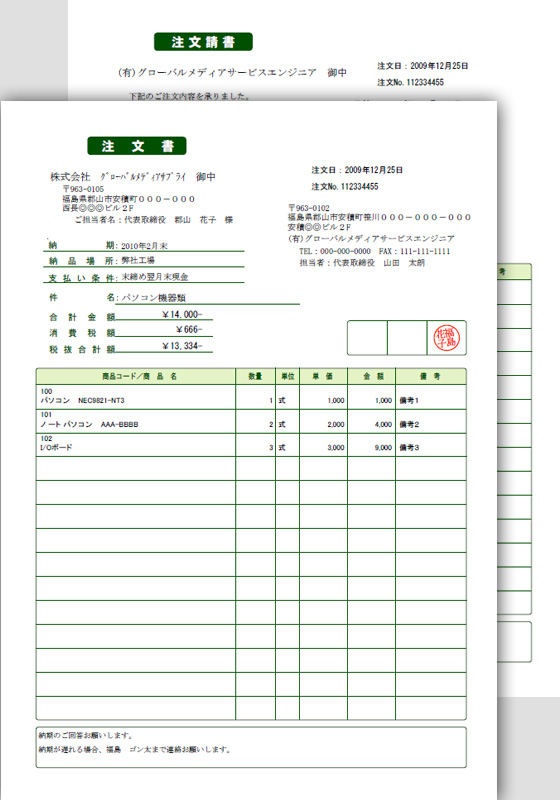 工場の生産設備などでは「注文書」を発行しても注文を受けた所(受注会社など)で「その注文は受けてませんよ!」などと言われたら生産計画などに影響を及ぼし損害が発生する場合があるわけでして・・・(実際にこのような事例は少ないとは思いますが)このような【その注文は確かに承りました】と言った意味で「注文請書」なるものが必用となります。