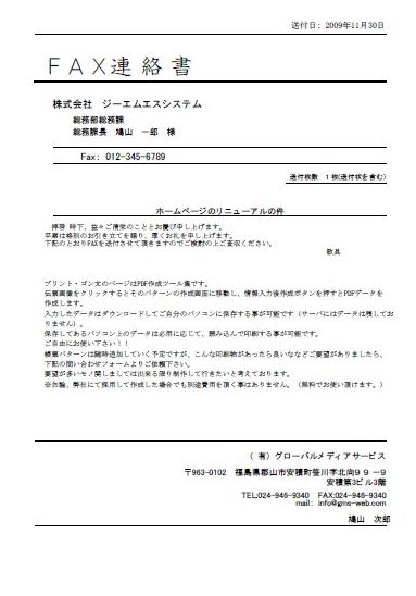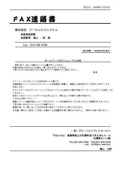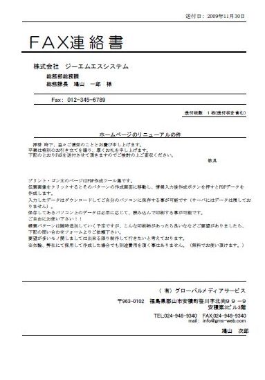 FAX送付案内書をPDFで作成します。お好みのフォーマットをお使い下さい。