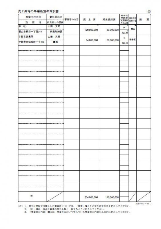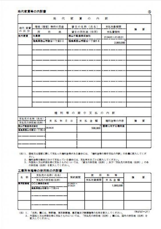地代家賃等の内訳書・工業所有権等の使用料の内訳書をPDFで作成します。