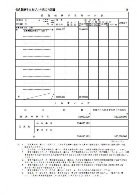 役員報酬手当及び人件費の内訳書をPDFで作成します。