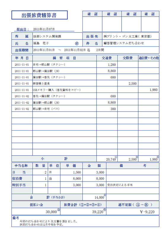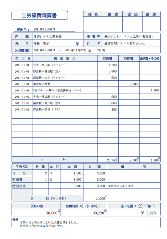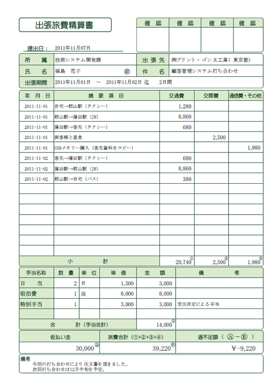 旅費精算書(A4縦タイプ)作成・・・タイプB