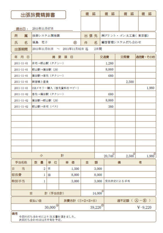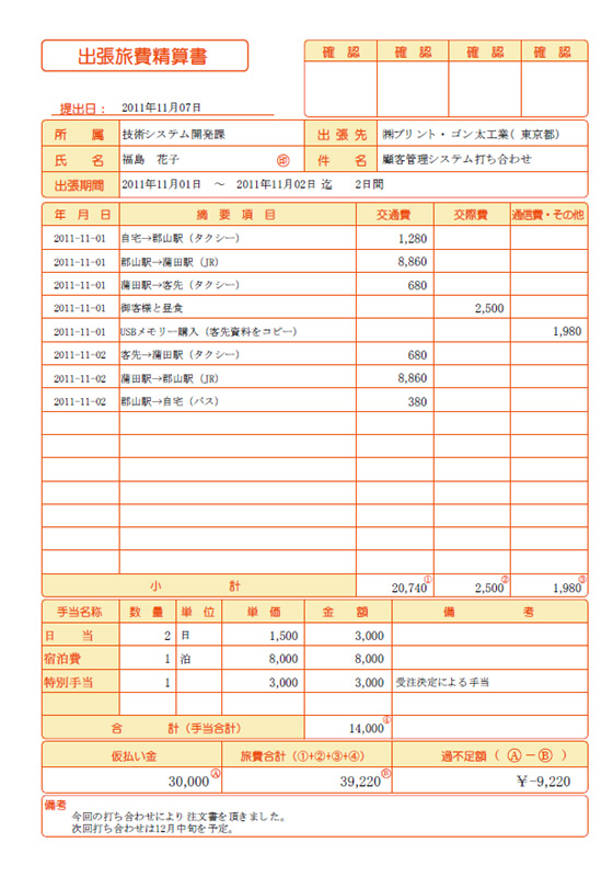 旅費精算書(A4縦タイプ)作成・・・タイプD