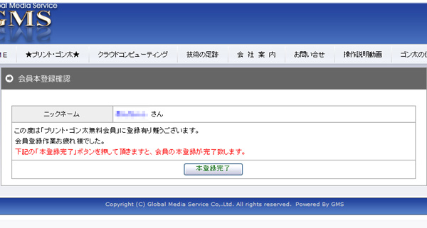 - この登録画面は終了して(閉じて)頂いて結構です。